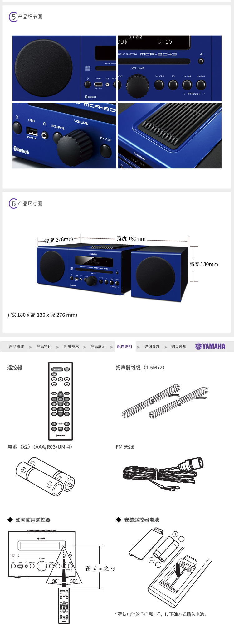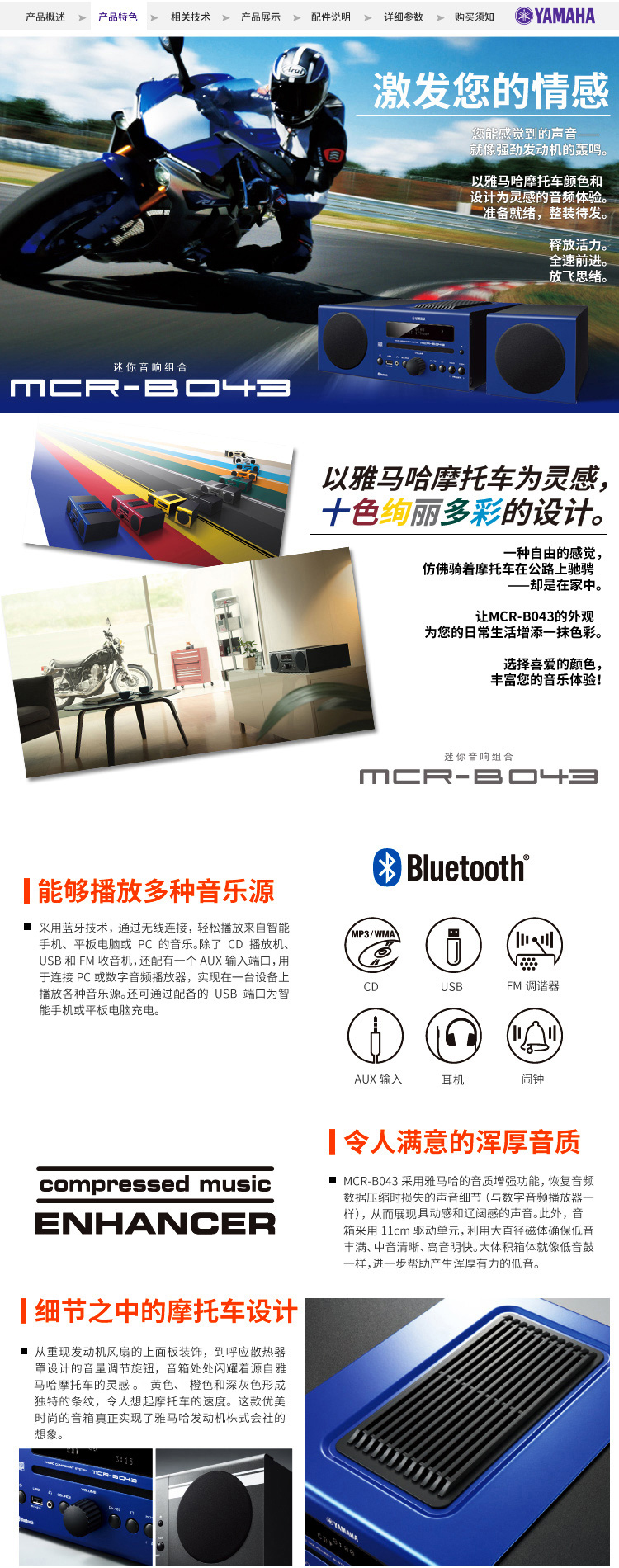 Yamaha/雅馬哈 MCR-B043 藍(lán)牙迷你組合音響
