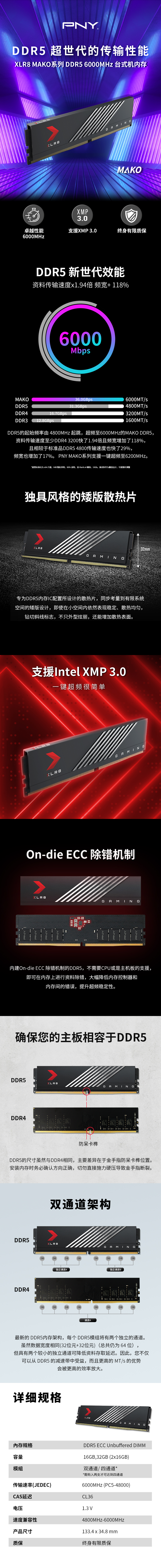 XLR8 DDR5 6000MHz MAKO Low profile 臺式機(jī)內(nèi)存